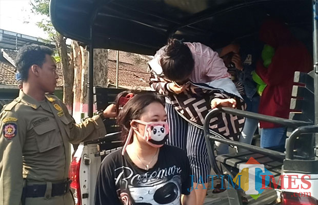 PSK Eks-Lokalisasi Dolog Sumbersuko saat diinterogasi dan didata di Kantor Satpol PP Lumajang. (Foto: Pawitra/JatimTIMES)